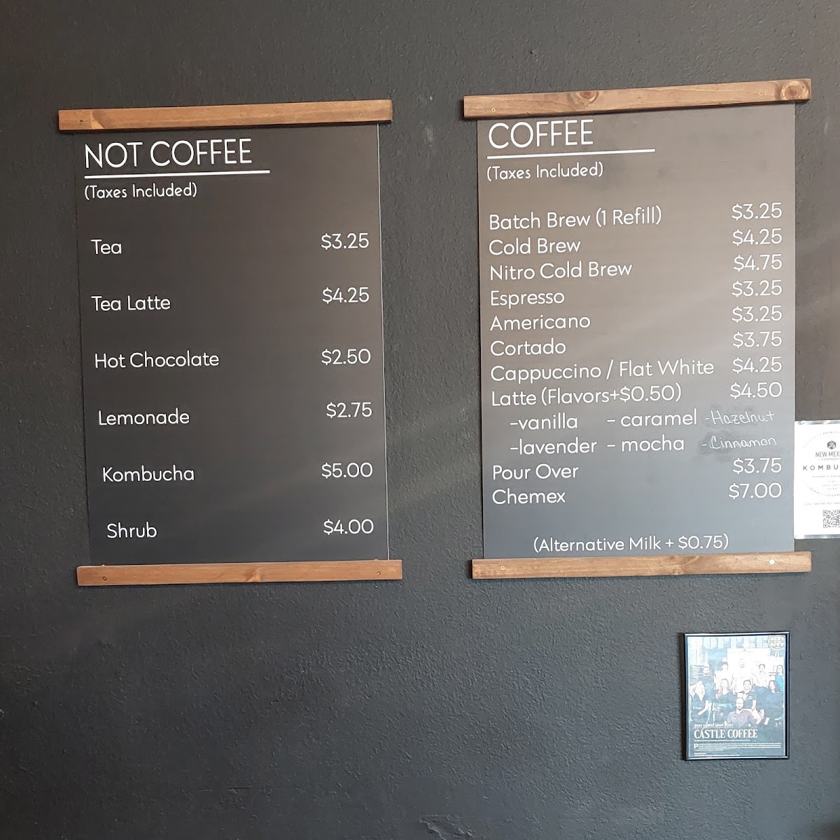 Castle Coffee, located at 1330 Rio Rancho Blvd SE, offers a diverse menu that caters to both coffee lovers and those seeking something unique. For those who prefer something warm and comforting, the Hot Cocoa and Steamer provide a sweet, cozy option, while the Kombucha offers a refreshing, tangy alternative. Tea enthusiasts can enjoy the variety of offerings under the Tea category, including Tea, Tea Latte, each brewed to perfection to satisfy different taste preferences.